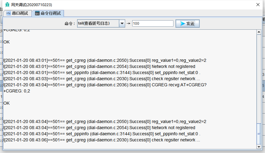 命令行調(diào)試->tail(查看撥號(hào)日志)”來(lái)獲取上網(wǎng)過(guò)程日志信息,會(huì)有提示上網(wǎng)過(guò)程,如看不太明白可發(fā)送到我方售后技術(shù)對(duì)接人員判別。" />